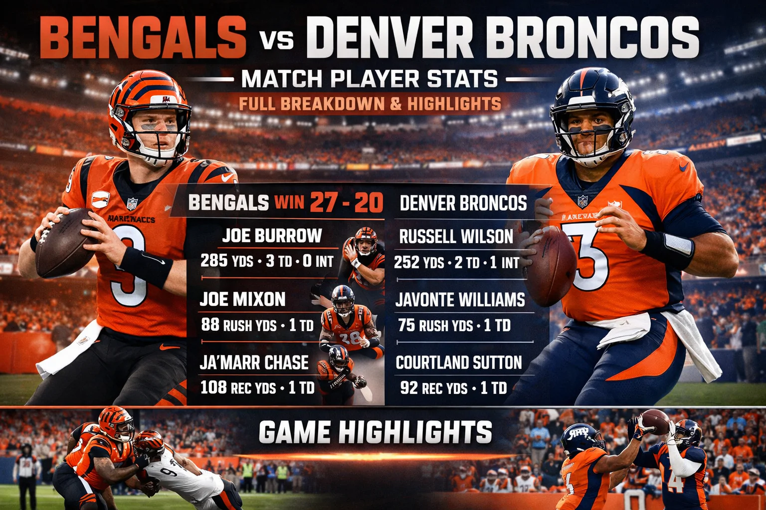 Bengals vs Denver Broncos Match Player Stats