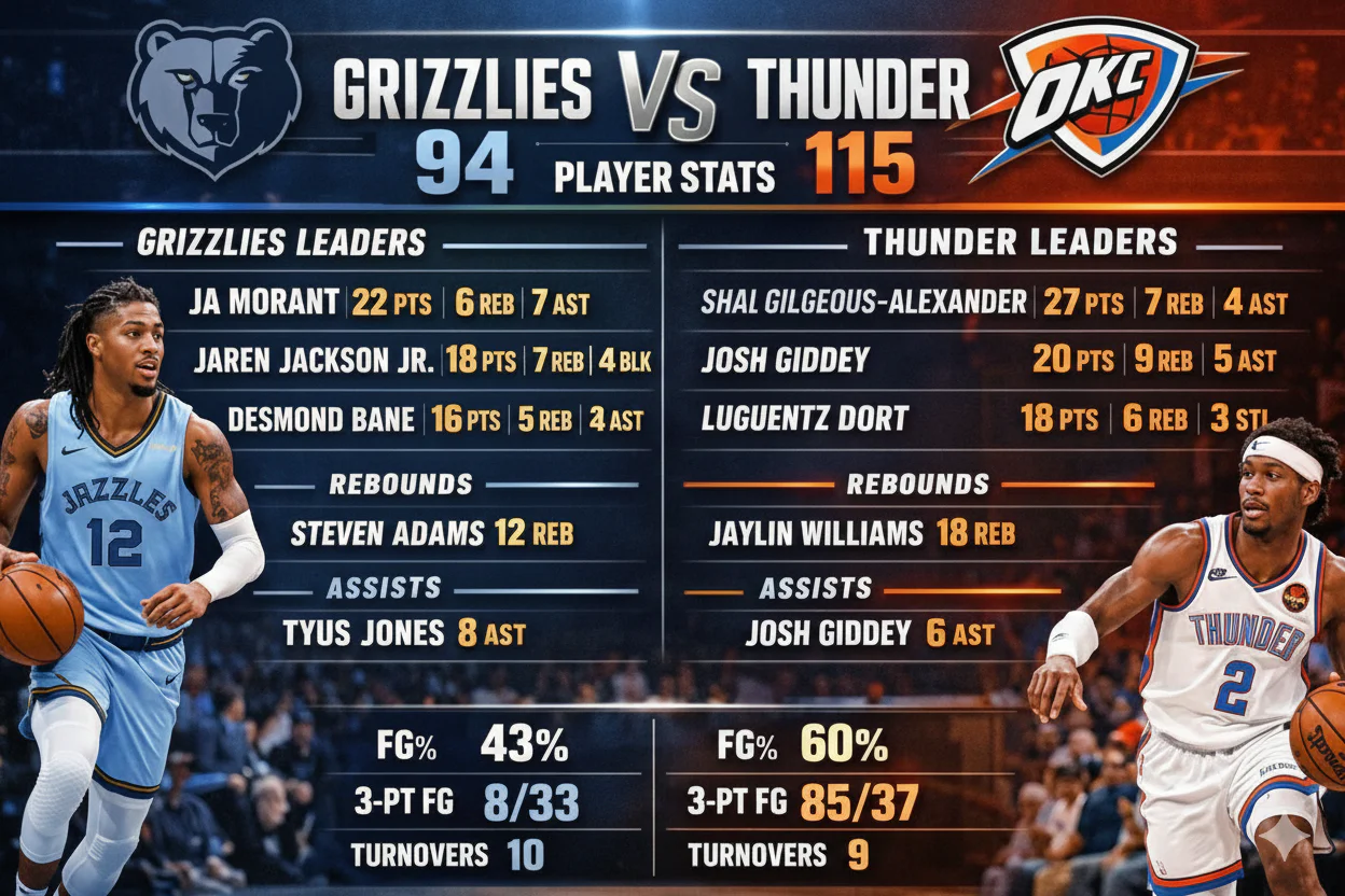 Memphis Grizzlies vs OKC Thunder Match Player Stats